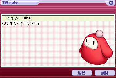 あと白爛でジェスター便箋が出た。メールって同じ垢のキャラにも送れるんだなw