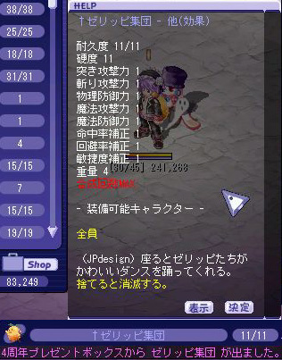 いや、イベ終了前にゼリッピ集団だけは手に入れたくて!!ネタ装備大好き!!(←