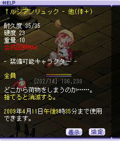 確か去年はボリリュックだった・・・?相変わらず背中装備ばかり出ます('ω`)