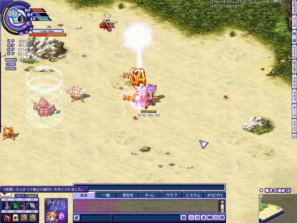 鎧が欲しくて海底2-1に逝ってみたけど俺が居て良い狩場じゃなかったので3に逃げ帰る。